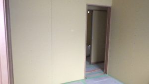 断熱材を入れた後は、クロスを貼るための下地となる石膏ボードをはっていきます。
